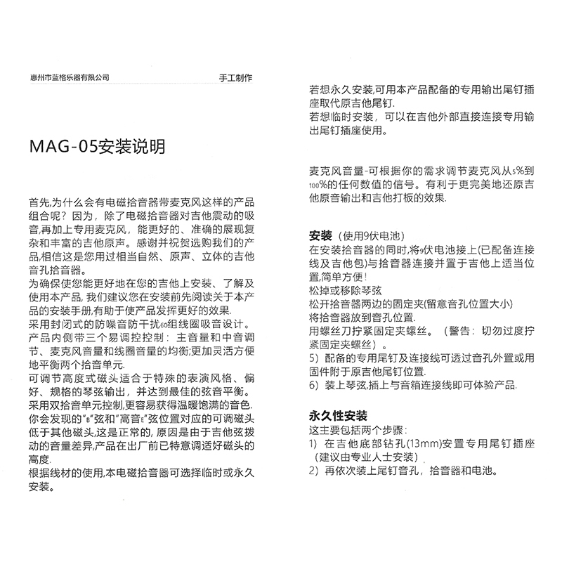 产品名:RANGO MAG-05 拾音器(民谣专用)