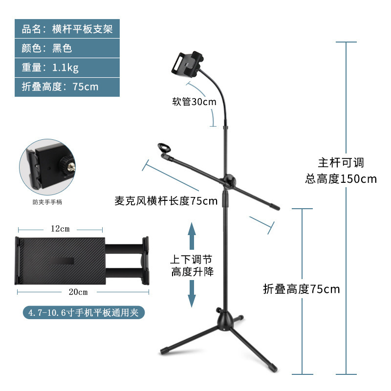 产品名:单平板加单话筒支架 K07